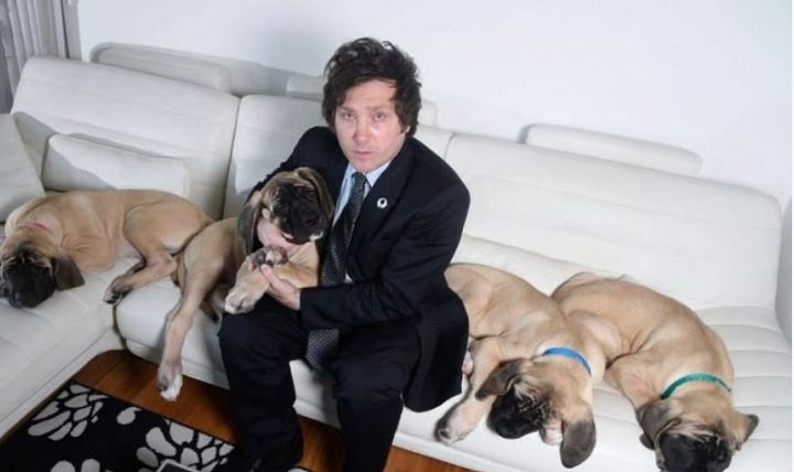 That Javier Milei is eccentric is made obvious merely by observing the picture above. His hair is not just rumpled in the photo - it looks that way in every picture I’ve ever seen of him. And the English Mastiffs are not a prop; they are his n…